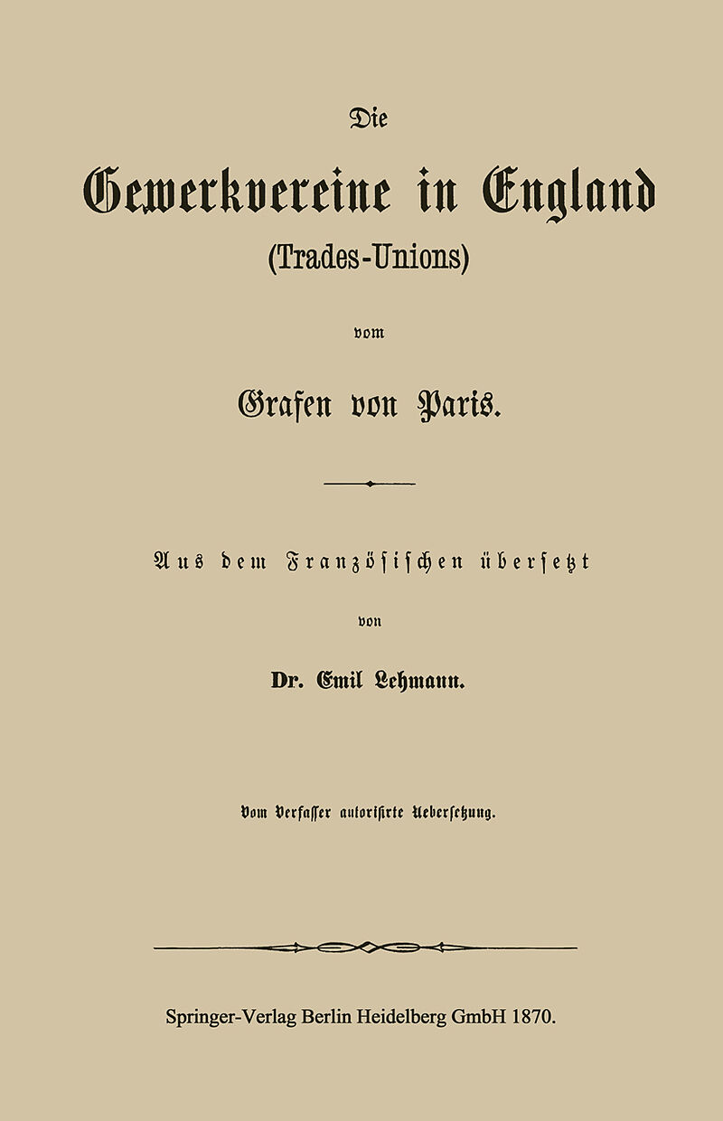 Die Gewerkvereine in England (Trades-Unions) vom Grafen vom Paris