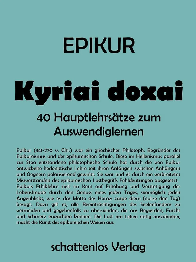 Epikur (341-270 v. Chr.) war ein griechischer Philosoph, Begründer des Epikureismus und der epikureischen Schule. Diese im Hellenismus parallel zur Stoa entstandene philosophische Schule hat durch die von Epikur entwickelte hedonistische Lehre seit ihren Anfä...