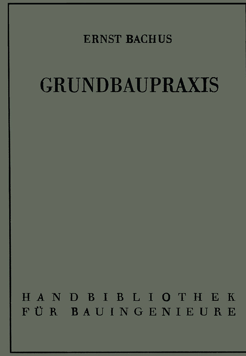 Inhalt 1 Der Untergrund.- 1.1 Bodenmechanik.- 1.2 Bodenarten.- 1.3 Bodenerkundung.- 1.4 Böschungssicherung.- 1.5 Bodenverfestigung.- 1.6 GrundWasserhaltung.- 2 Flachgründungen.- 2.1 Einzelfundamente.- 2.2 Streifenfundamente.- 2.3 Plattengründungen.- 2.4 Gründu...