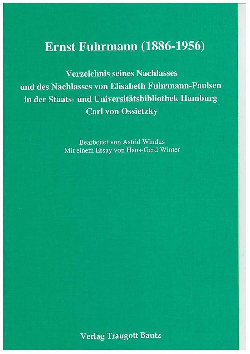 Die angereicherten Nachlässe von Ernst Fuhrmann (1886-1956) und seiner Ehefrau Elisabeth Fuhrmann-Paulsen (1879-1951) zählen zu den mittelgroßen Nachlassbeständen in der Handschriftenabteilung der Staats- und Universitätsbibliothek Hamburg. Schon deshalb, aber mehr noch angesichts des heute weitgehend unbekannten Werkes beider, ist es erfreulich, mit der vorliegenden Veröffentlichung ein vollständiges Verzeichnis der in dieser Bibliothek aufbewahrten Nachlassmaterialien des Hamburger Kaufmanns, Schriftstellers, Museumsdirektors, Verlegers und darüber hinaus autodidaktischen Anthropologen, Biosophen und Etymologen sowie der Dichterin vorlegen zu können.