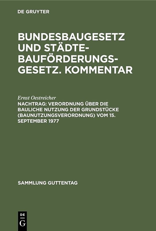 Dieser Titel, "Verordnung über die bauliche Nutzung der Grundstücke (Baunutzungsverordnung) vom 15. September 1977", ist eine wissenschaftliche Publikation, erschienen bei De Gruyter Brill. Ausführliche Beschreibung, Inhaltsverzeichnis und weitere Angaben find...