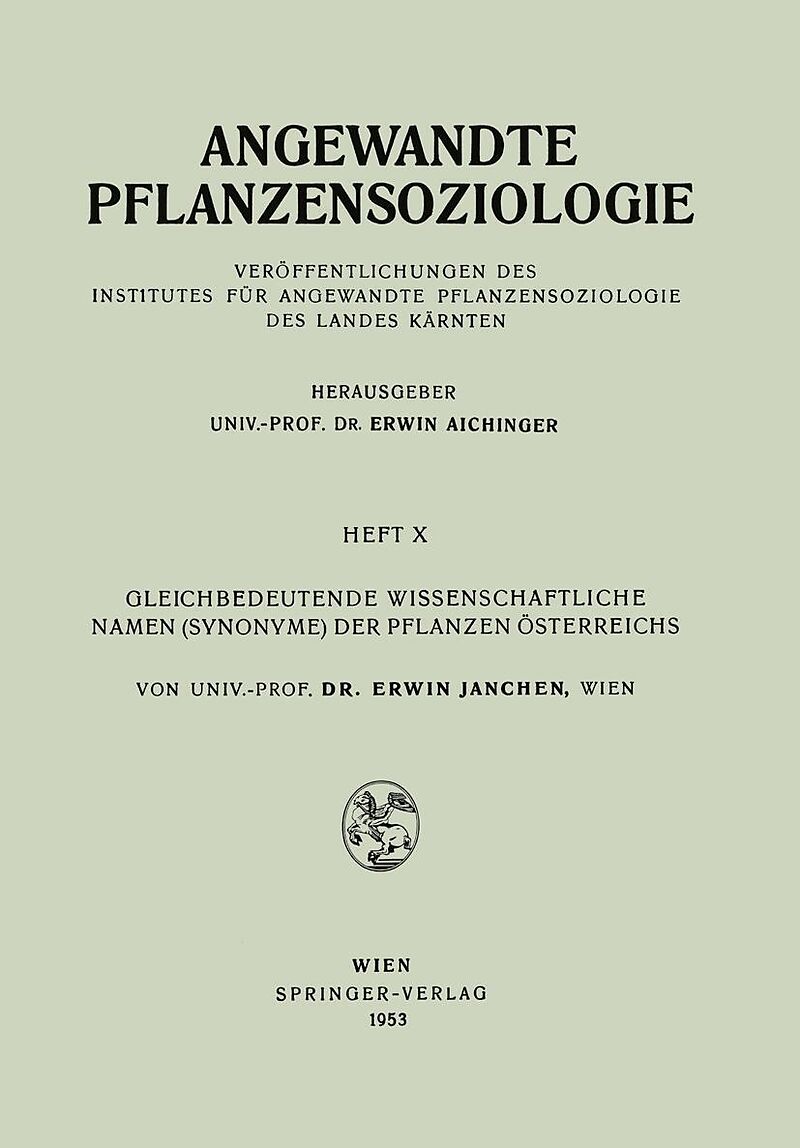 Inhalt Gleichbedeutende wissenschaftliche Namen (Synonyme) der Pflanzen Österreichs.- Erster Teil: Bryophyta, Moose (Laubmoose und Lebermoose).- Zweiter Teil: Pteridophyta, Farnpflanzen.- Dritter Teil: Gymnospermae, Nacktsamer.- Vierter Teil: Angiospermae, Dec...