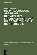 Frontmatter -- Vorwort -- Die philologische Arbeit an den älteren Kirchenlehrern und ihre Bedeutung für die Theologie -- Backmatter