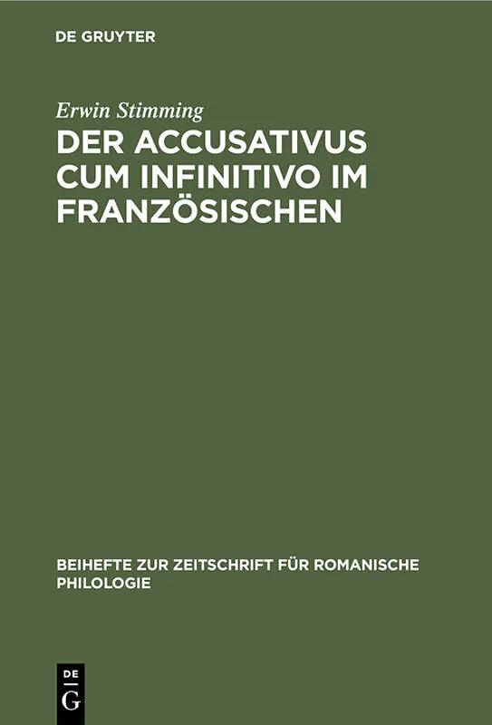 Dieser Titel, "Der Accusativus cum infinitivo im Französischen", ist eine wissenschaftliche Publikation, erschienen bei De Gruyter Brill. Ausführliche Beschreibung, Inhaltsverzeichnis und weitere Angaben finden Sie auf der Verlagswebsite: https://www.degruyter...