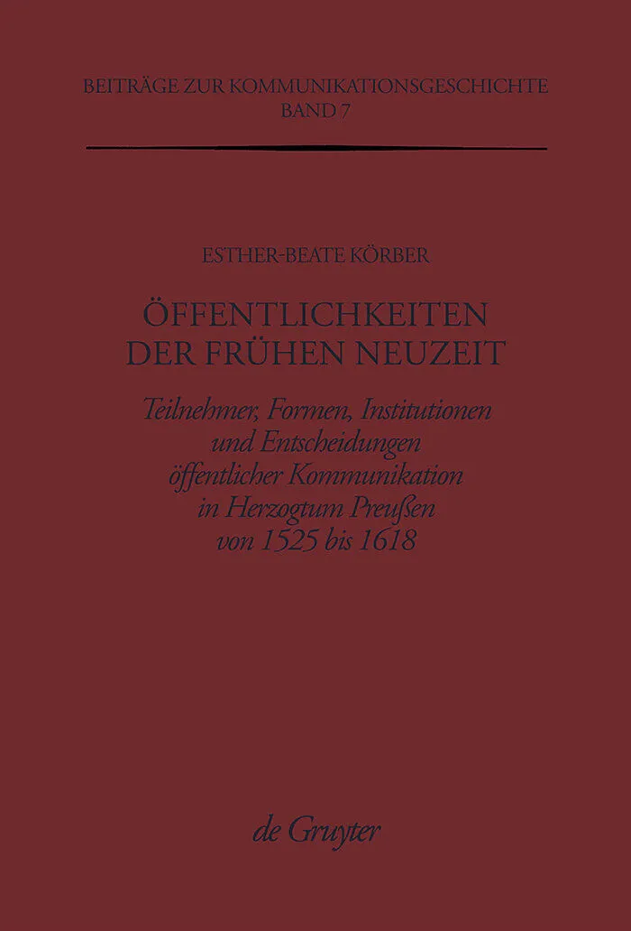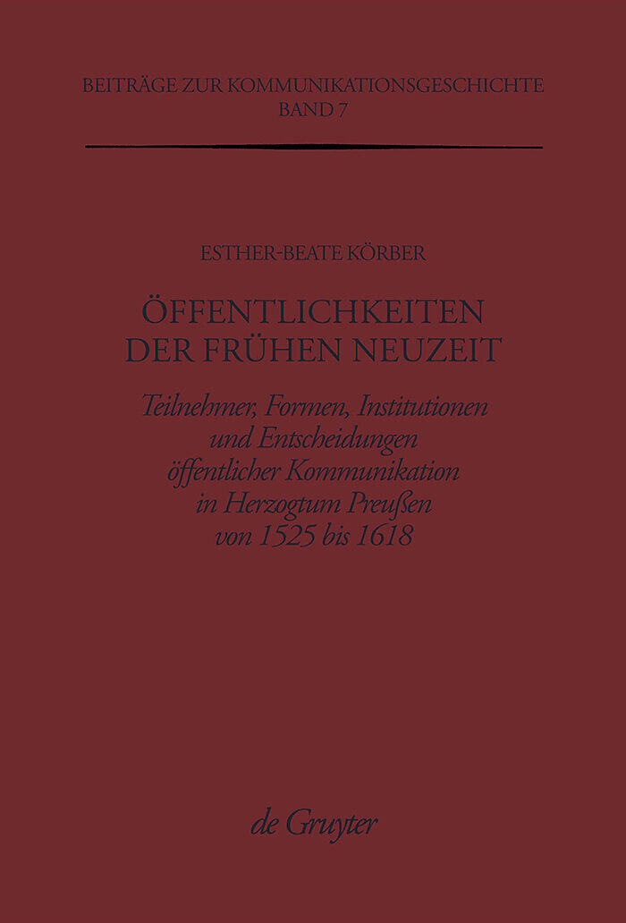 Frontmatter -- Vorwort -- Inhalt -- Abkürzungen -- Grundsätzliche Überlegungen -- I. Öffentlichkeitsformen in der frühen Neuzeit -- II. Das herzogtum preußen im 16. und frühen 17. Jahrhundert -- ?II. Quellen- und Literaturbericht -- IV. Ziele der arbeit -- Ers...
