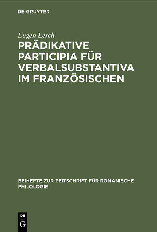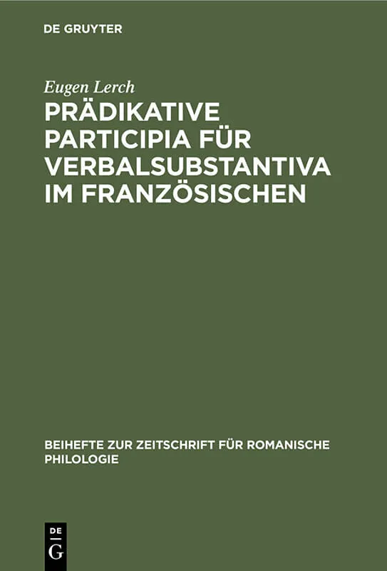 Dieser Titel, "Prädikative Participia für Verbalsubstantiva im Französischen", ist eine wissenschaftliche Publikation, erschienen bei De Gruyter Brill. Ausführliche Beschreibung, Inhaltsverzeichnis und weitere Angaben finden Sie auf der Verlagswebsite: https:/...