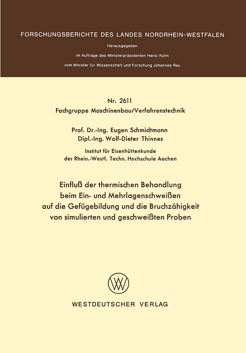 Inhalt I. Einfluß einer schweißsimulierenden Wärmebehandlung auf das Umwandlungsverhalten hochfester mikrolegierter Feinkornbaustähle.- II. Das Bruchzähigkeitsverhalten von hochfesten Feinkornbaustählen nach Simulation von Ein- und Mehrlagenschweißtemperaturzy...