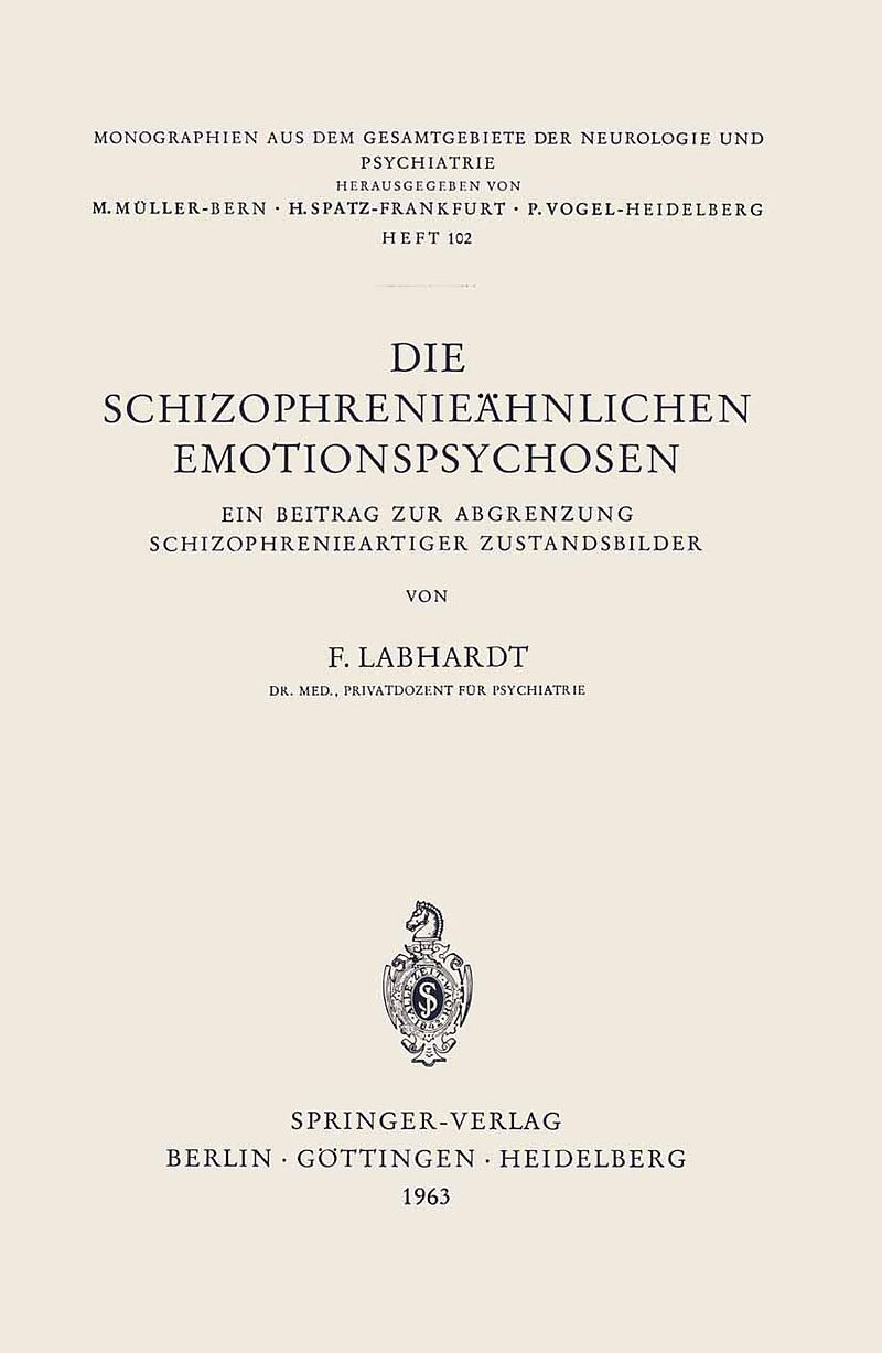 Inhalt I. Einleitung.- II. Allgemeines über schizophrene und schizophrenieähnliche Reaktionen.- III. Die Struktur der Emotionspsychosen.- a) Geschlecht, Herkunft und Häufigkeit.- b) Heredität.- c) Physische und psychische Veranlagung.- d) Alter.- e) Die psychi...