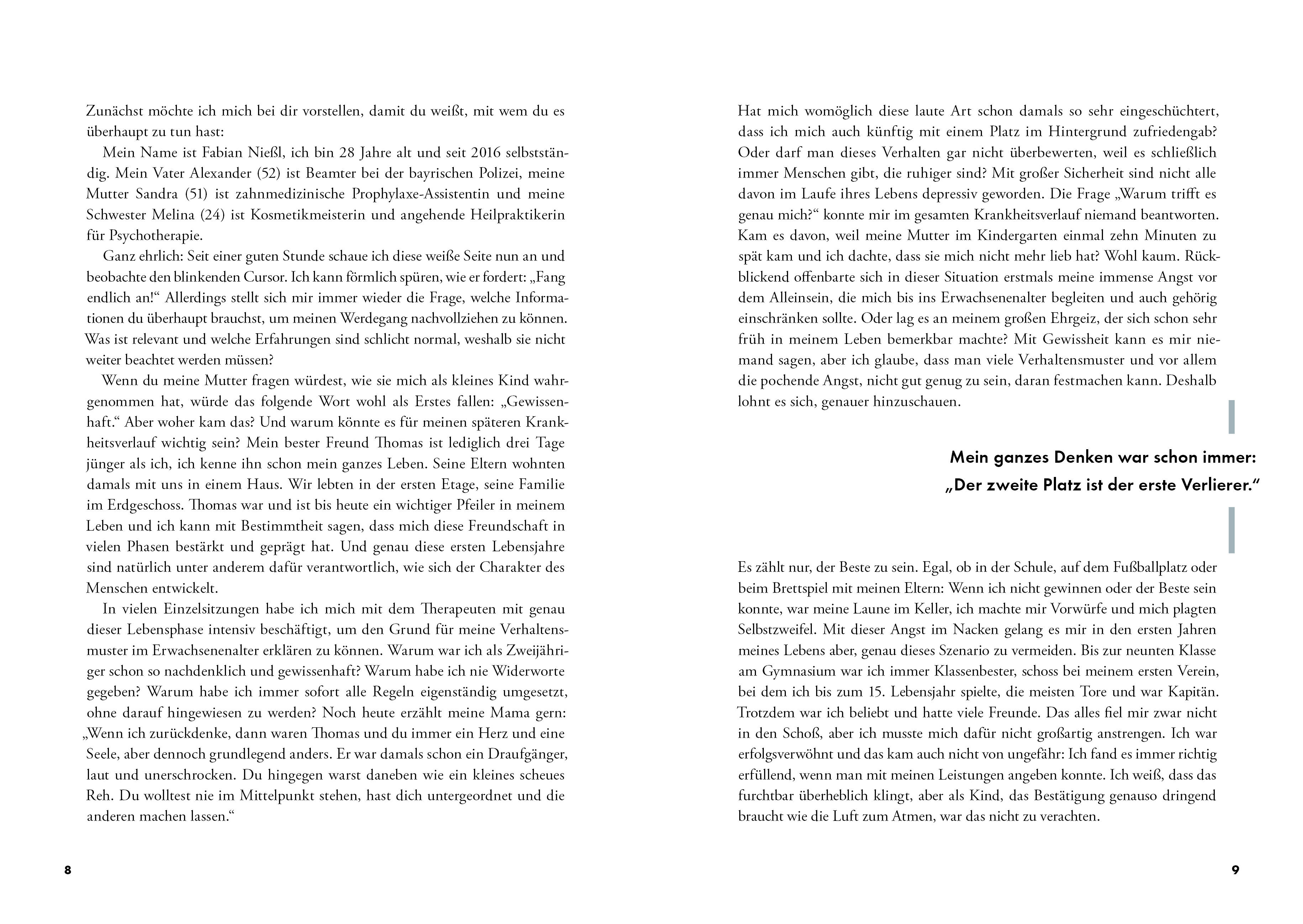 RAUS AUS DER DEPRESSION, ZURÜCK INS LEBEN! Fabian Nießl hat mit gerade mal 28 Jahren schon einiges hinter sich. Seine athletische, muskulöse Erscheinung vermittelt nahezu reflexartig ein völlig falsches Bild von ihm. Denn hinter diesem Schutzschild versteckt ...