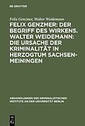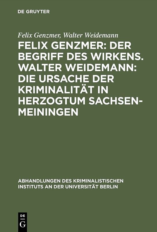 Dieser Titel, "Felix Genzmer: Der Begriff des Wirkens. Walter Weidemann: Die Ursache der Kriminalität in Herzogtum Sachsen-Meiningen", ist eine wissenschaftliche Publikation, erschienen bei De Gruyter Brill. Ausführliche Beschreibung, Inhaltsverzeichnis und we...