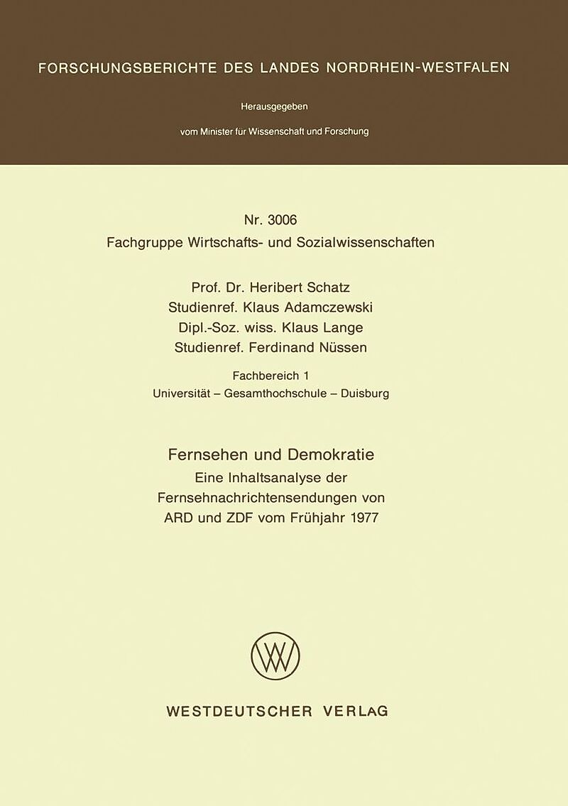 Inhalt I. Vorbemerkung zur vorliegenden Untersuchung.- 1. Zielsetzung.- 2. Gegenstand und Durchführung der empirischen Untersuchung.- II. Zur demokratietheoretischen Konzeptualisierung des Fernsehens.- 1. Kritik strukturell-funktionalistischer Massenkommunikat...