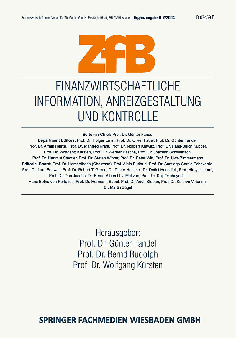 Das ZfB-Ergänzungsheft befasst sich mit der Analyse von Kreditportfoliostrukturen in Banken, mit alternativen Risikomessverfahren in Kreditinstituten sowie mit virtuellen Börsen als Marktforschungsinstrumente und Anreizverträgen für Teams. Vorgehen bei Anreiz...