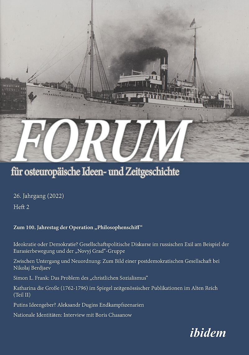 Themen der Ausgabe sind: -Ideokratie oder Demokratie? Gesellschaftspolitische Diskurse im russischen Exil am Beispiel der Eurasierbewegung und der "Novyj Grad"-Gruppe -Zwischen Untergang und Neuordnung: Zum Bild einer postdemokratischen Gesellschaft bei Nikol...