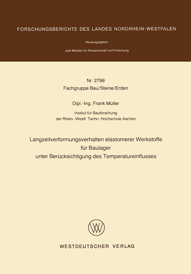 Inhalt Inhaltsübersicht.- 1. Problemstellung und Ziel des Forschungsvorhabens.- 1.1. Allgemeines über Anwendung und Bedeutung von Elastomerlagern.- 1.2. Problemstellung.- 1.3. Zielsetzung.- 2. Theoretische Grundlagen und Darstellung von Einflußgrößen auf das L...