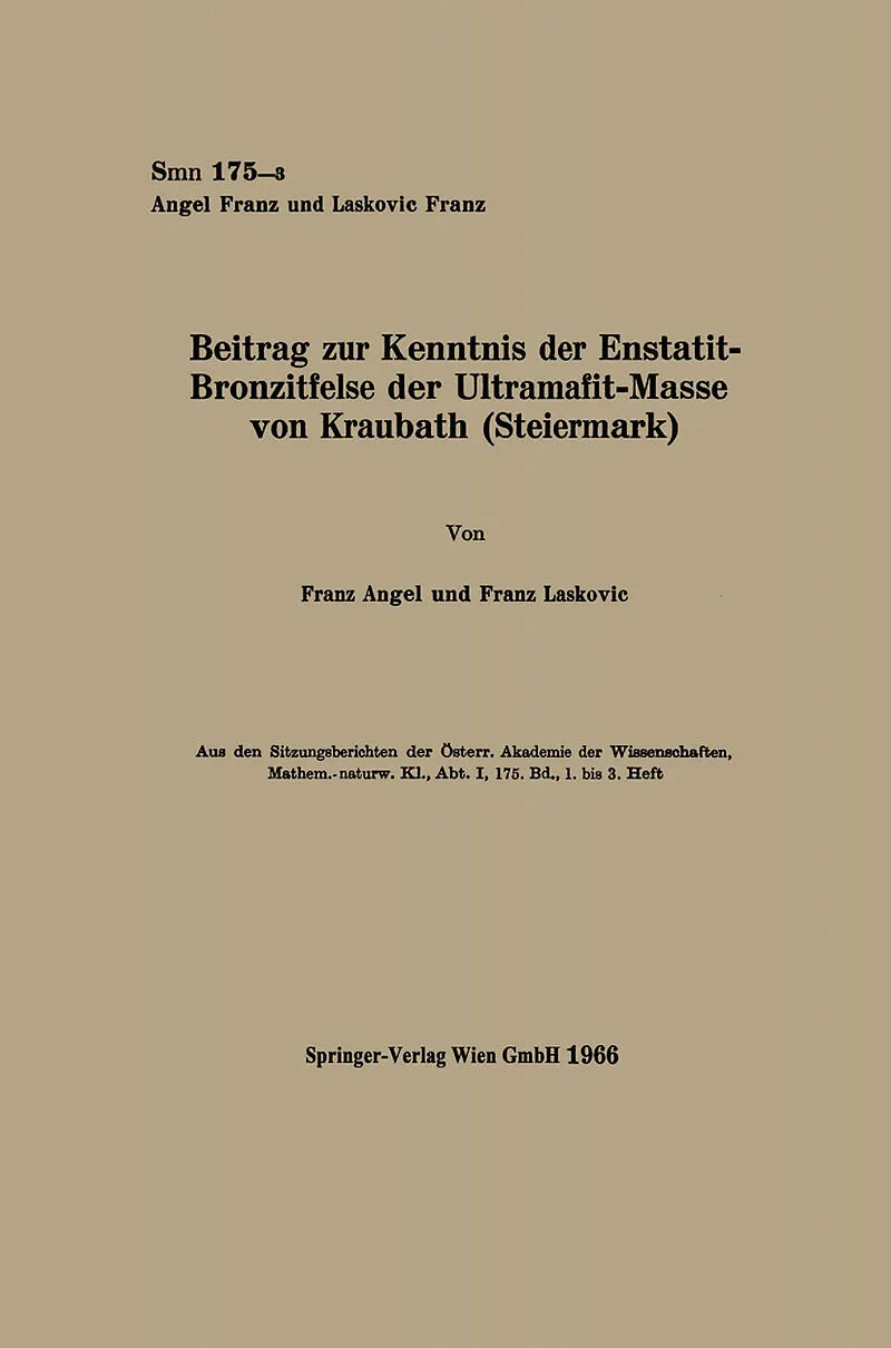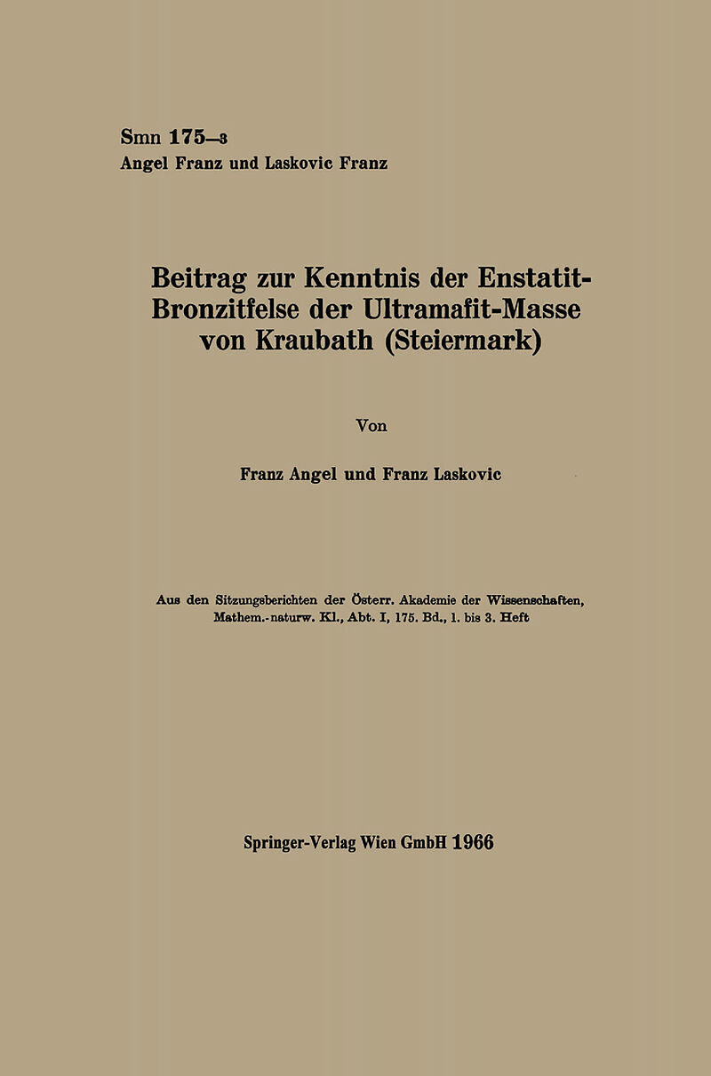 InhaltBeitrag zur Kenntnis der Enstatit-Bronzitfelse der Ultramafit-Masse von Kraubath (Steiermark).