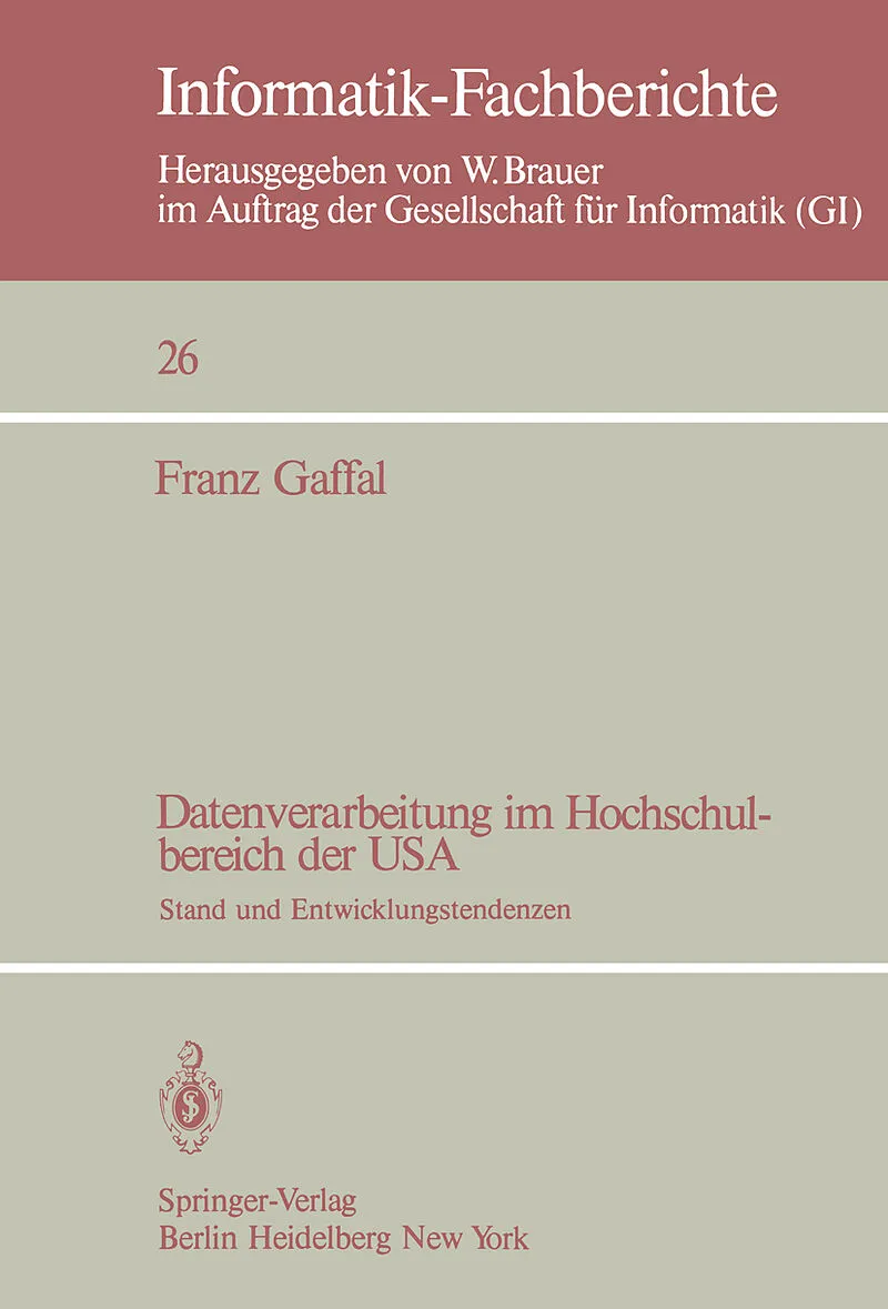 Inhalt 1. Einführung.- 2. Einige Bemerkungen zum Aufbau des höheren Bildungswesens in den USA.- 3. Allgemeine Organisation und Struktur der Datenverarbeitung an Hochschulen der USA.- 4. Datenverarbeitung in Lehre und Forschung.- 4.1 Besondere Systeme mit schwe...