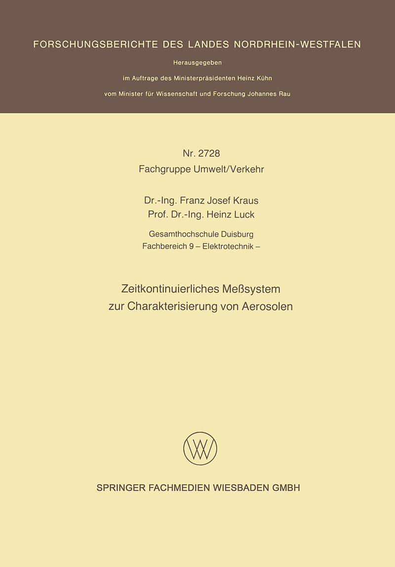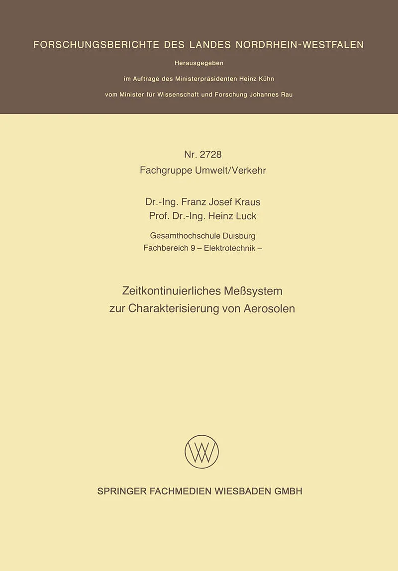 Inhalt 1. Einleitung.- 2. Zur Definition von Aerosolparametern.- 3. Zeitkontinuierliche Meßsysteme.- 4. Verfahren zur Bestimmung der Parameter eines Modellaerosols.- 5. Experimentelle Untersuchung der Meßfunktionen.- 6. Beispiele für praktische Anwendungen des...