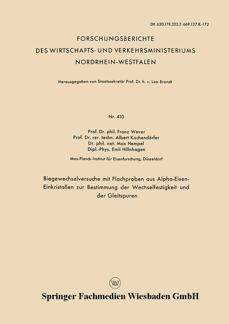 Inhalt Gliederung.- A. Einleitung.- B. Wechselbeanspruchung und Dauerschwingfestigkeit.- C. Bisherige Untersuchungen über Verformungserscheinungen an Kristalloberflächen.- D. Verfahren zur Herstellung von Einkristallen.- E. Versuchsdurchführung.- F. Versuchser...