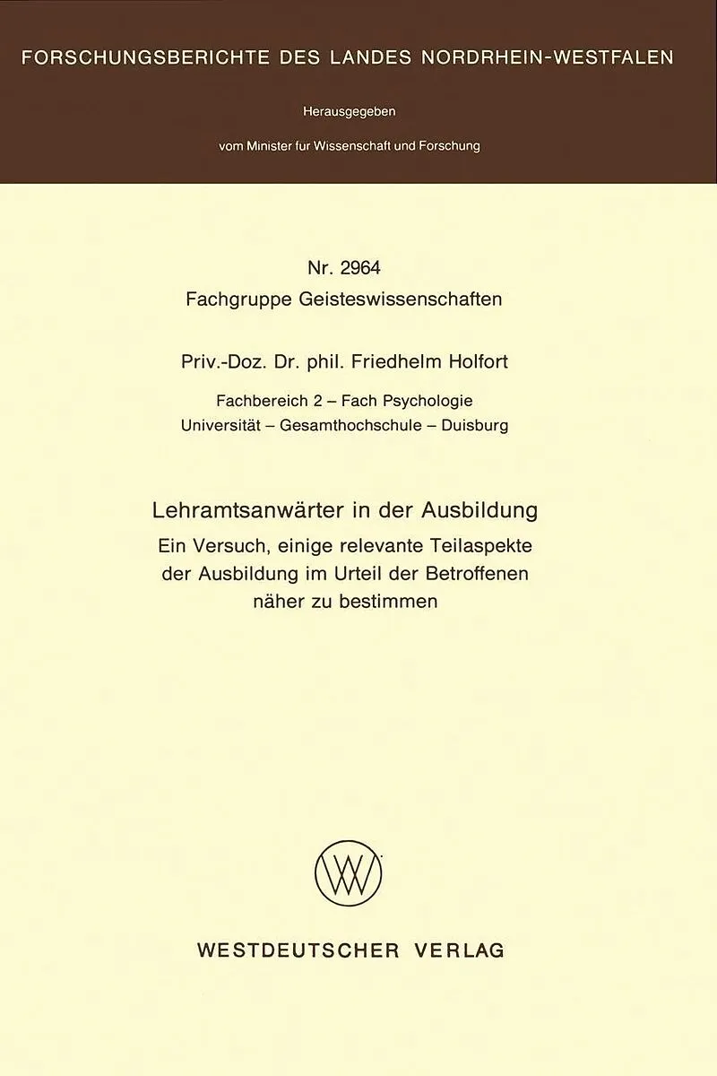 Inhalt 1. Einleitung.- 2. Die Zweite Phase.- 3. Anspruch und Ansatz des Forschungsvorhabens.- 4. Vorversuche und Vorarbeiten.- 5. Durchführung der Fragebogen für Lehramtsanwärter.- 6. Zeiträume der Untersuchung der Lehramtsanwärter.- 7. Durchführung der Befrag...