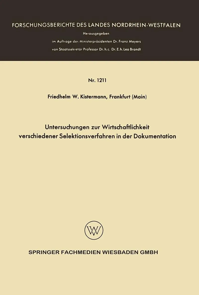 Inhalt 2. Einführung.- 3. Ziel der Untersuchung.- 4. Überblick über den Plan der Untersuchung.- 5. Untersuchungsmaterial.- 6. Erstellung des weiteren Untersuchungsmaterials.- 7. Statistische Untersuchungen.- 8. Selektionsuntersuchungen.- 9. Betrachtungen zur W...