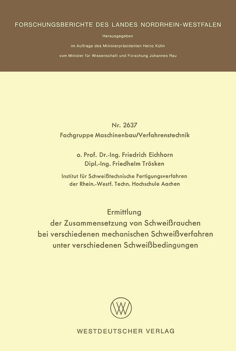Inhalt 1. Einleitung.- 2. Problemstellung.- 3. Versuchsaufbau und Versuchsdurchführung.- 3.1 Feste Schadstoffe.- 3.2 Gase.- 3.3 Lärm.- 4. Versuchsergebnisse.- 4.1 Schweißrauche.- 4.2 Gase.- 4.3 Schallpegel und Schallspektrum.- 5. Diskussion der Ergebnisse im H...