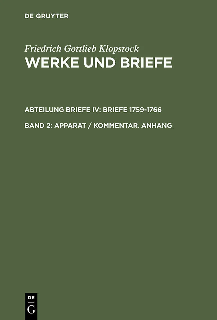 Using introductory explanations to the individual letters in the text volume and commentaries at relevant points on biographical details of the addressees of the letters, in particular on their relationship to Klopstock, the critical apparatus provides inform...