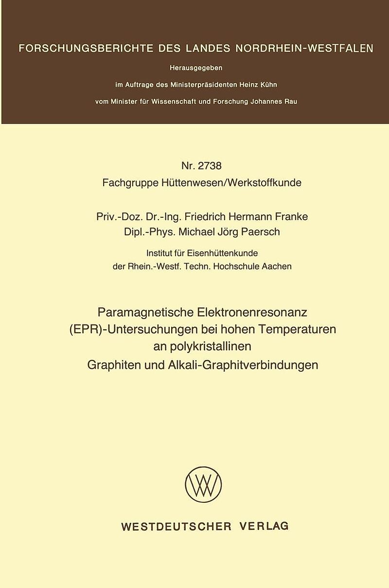 Inhalt 1. Einleitung.- 2. Experimentelle Anordnung.- 2.1 EPR-Spektrometer.- 2.2 Hochtemperatur-Einsatz.- 3. Probe und Probenvorbereitung.- 3.1 Reinstgraphit.- 3.2 Alkali-Graphitverbindungen.- 4. Meßergebnisse und Auswertung der EPR-Spektren.- 4.1 Reinstgraphit...