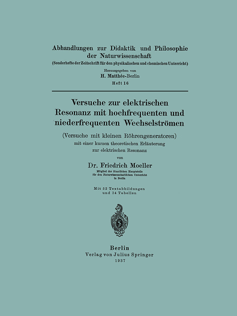 Versuche zur elektrischen Resonanz mit hochfrequenten und niederfrequenten Wechselströmen (Versuche mit kleinen Röhrengeneratoren) mit einer kurzen theoretischen Erläuterung zur elektrischen Resonanz