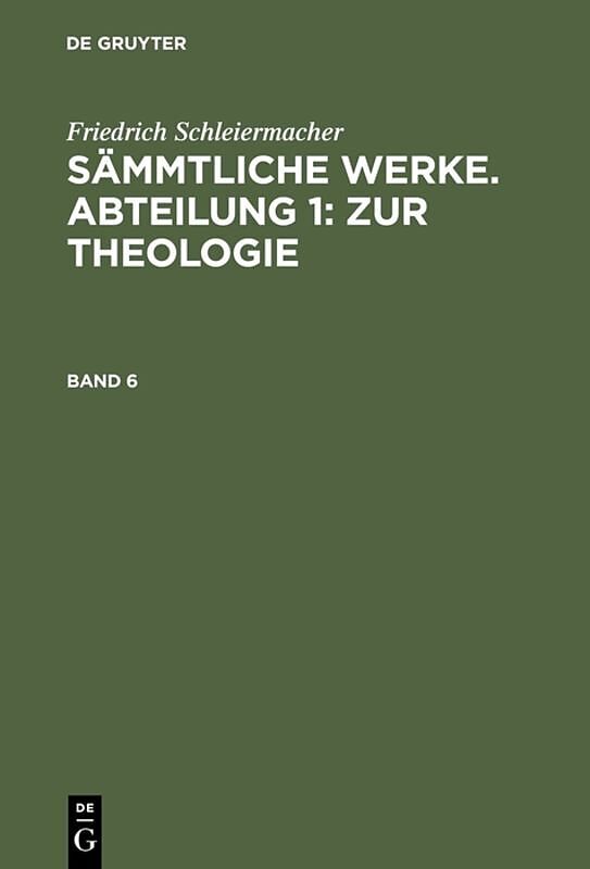 Dieser Titel, "Sämmtliche Werke. Abteilung 1: Zur Theologie. Band 6", ist eine wissenschaftliche Publikation, erschienen bei De Gruyter Brill. Ausführliche Beschreibung, Inhaltsverzeichnis und weitere Angaben finden Sie auf der Verlagswebsite: https://www.degr...