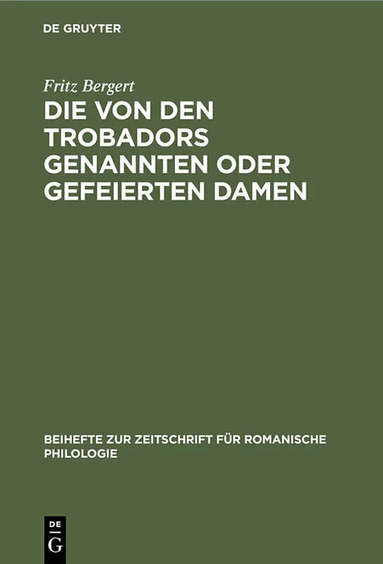 Dieser Titel, "Die von den Trobadors genannten oder gefeierten Damen", ist eine wissenschaftliche Publikation, erschienen bei De Gruyter Brill. Ausführliche Beschreibung, Inhaltsverzeichnis und weitere Angaben finden Sie auf der Verlagswebsite: https://www.deg...