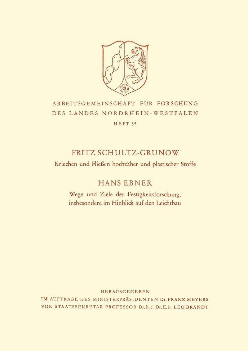 InhaltKriechen und Fließen hochzäher und plastischer Stoffe.- Wege und Ziele der Festigkeitsforschung, insbesondere im Hinblick auf den Leichtbau..- Diskussionsbeiträge.
