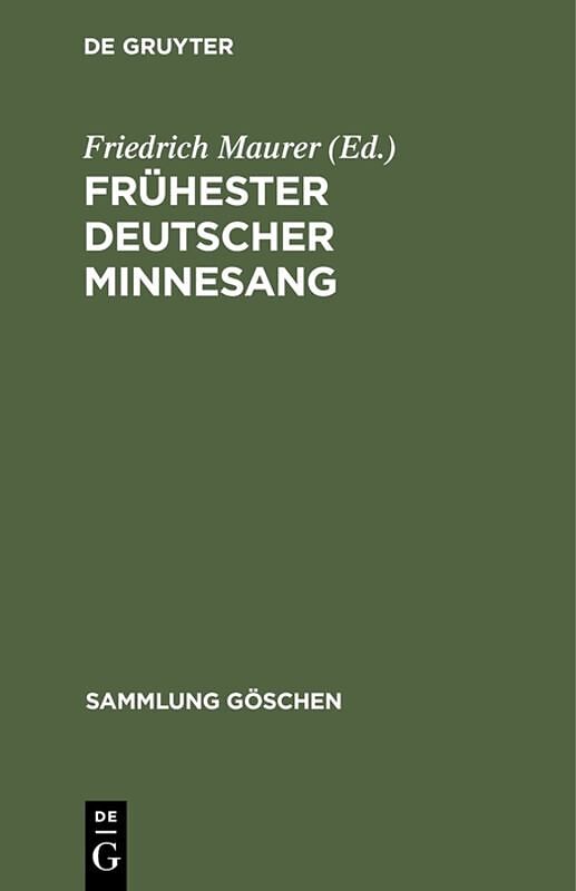 Keine ausführliche Beschreibung für "Frühester deutscher Minnesang" verfügbar. Zusammenfassung Frontmatter -- Inhalt -- Einführung -- A. Der Donauländische Minnesang -- B. Der frühe westliche (rheinische) Minnesang -- C. Vereinigung heimischer Tradition und n...