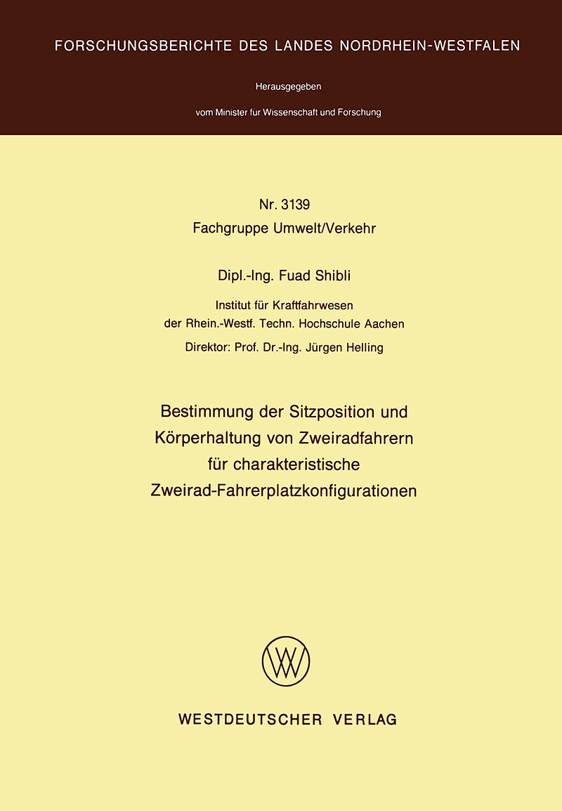 Inhalt 1. Einleitung.- 2. Problemdefinition und Aufgabenstellung.- 2.1 Bedeutung der Ergonomie am Arbeitsplatz.- 2.2 Aufgabenstellung.- 2.3 Arbeitsablauf.- 3. Bau einer dreidimensionalen Motorrad-Meßpuppe und einer entsprechenden Meßvorrichtung.- 3.1 Die Motor...