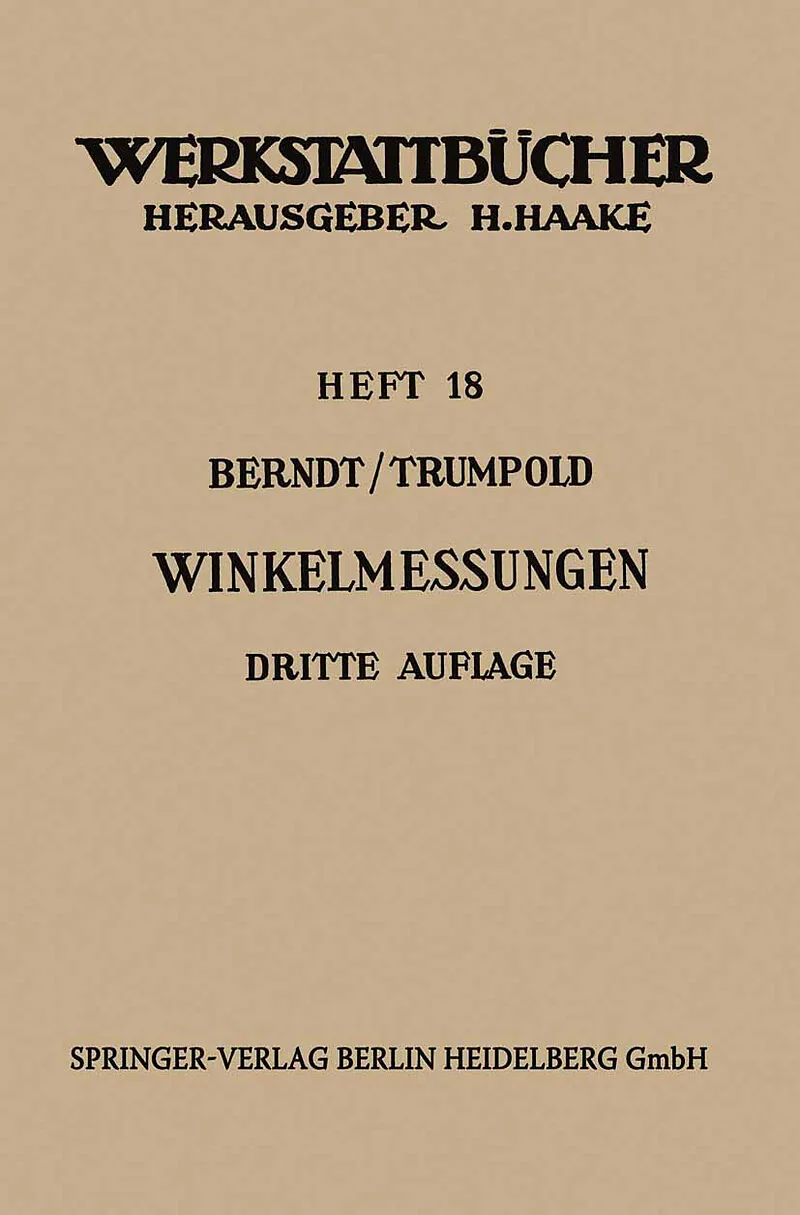 1 Allgemeines Gegenüber der Bestimmung von Längen tritt die von Winkeln in der Technik stark zurück; dies zeigt bereits ein oberflächlicher Vergleich der Anzahl der für beide Zwecke zur Verfügung stehenden Meßgeräte. Dasselbe gilt auch bezüglich der jeweils...