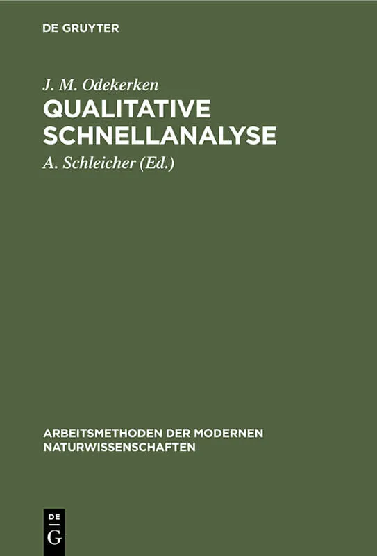 Frontmatter -- Vorwort des Herausgebers zur 1. Auflage -- Vorwort des Herausgebers zur 2. Auflage -- Inhaltsverzeichnis -- Einführung nach Charlot-Bözier-Gauguin -- ERSTER TEIL. QUALITATIVE ANALYSE DER KATIONEN -- ZWEITER TEIL. QUALITATIVE ANALYSE DER ANIONEN ...