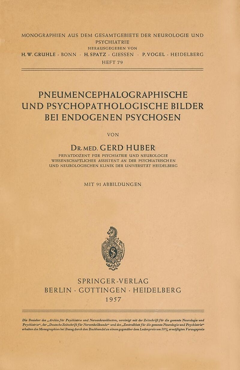 Inhalt A. Einleitung.- 1. Ursprung, Fragestellung und Ziel der Arbeit.- 2. Frühere Untersuchungen.- 3. Methodische und technische Voraussetzungen bei der Pneumencephalographie.- 4. Diagnose und Auswahl des Materials.- 5. Psychopathologische und therapeutische ...