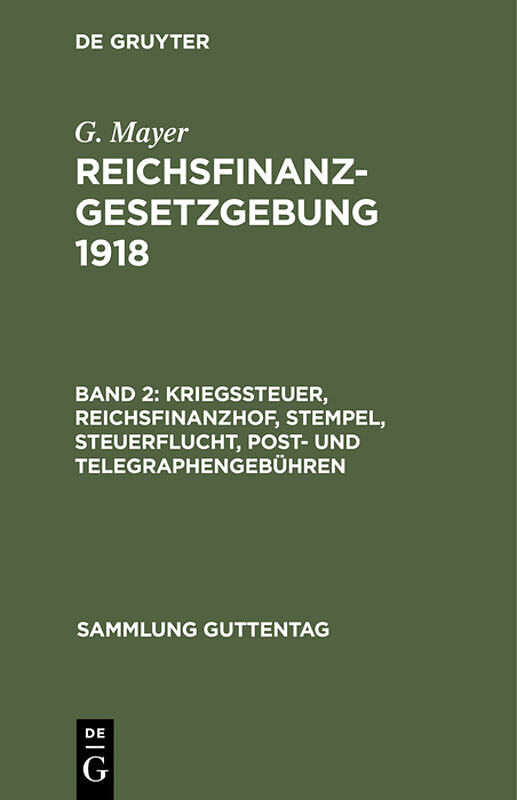 Dieser Titel, "Kriegssteuer, Reichsfinanzhof, Stempel, Steuerflucht, Post- und Telegraphengebühren", ist eine wissenschaftliche Publikation, erschienen bei De Gruyter Brill. Ausführliche Beschreibung, Inhaltsverzeichnis und weitere Angaben finden Sie auf der V...