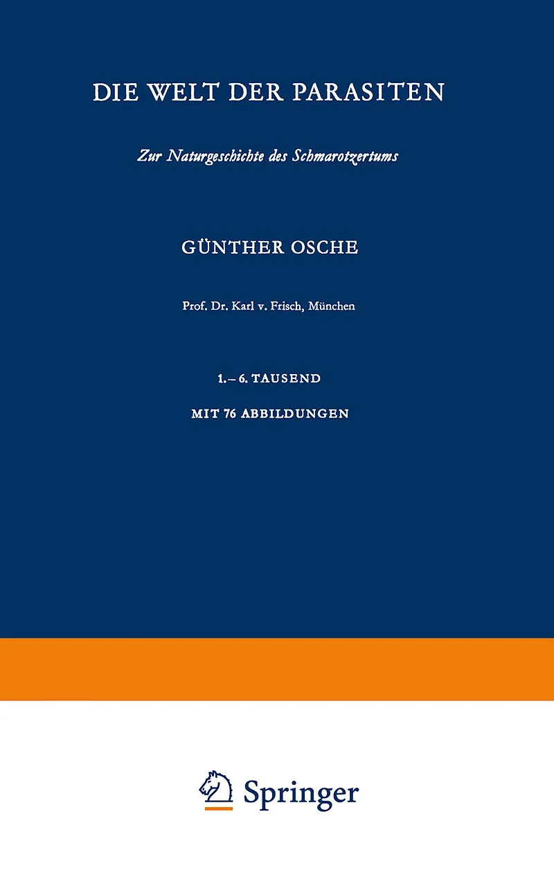 Wenn es Tiere gibt, mit denen der Mensch nichts zu tun haben will, ja bei deren bloßen Erwähnung er schon die Nase rümpft, dann sind es die Schmarotzer, die Parasiten. Er sieht in ihnen ver ständlicherweise Feinde und Krankheitserreger, die ihn selbst, seine H...