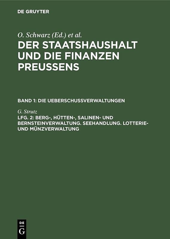 Dieser Titel, "Berg-, Hütten-, Salinen- und Bernsteinverwaltung. Seehandlung. Lotterie- und Münzverwaltung", ist eine wissenschaftliche Publikation, erschienen bei De Gruyter Brill. Ausführliche Beschreibung, Inhaltsverzeichnis und weitere Angaben finden Sie a...