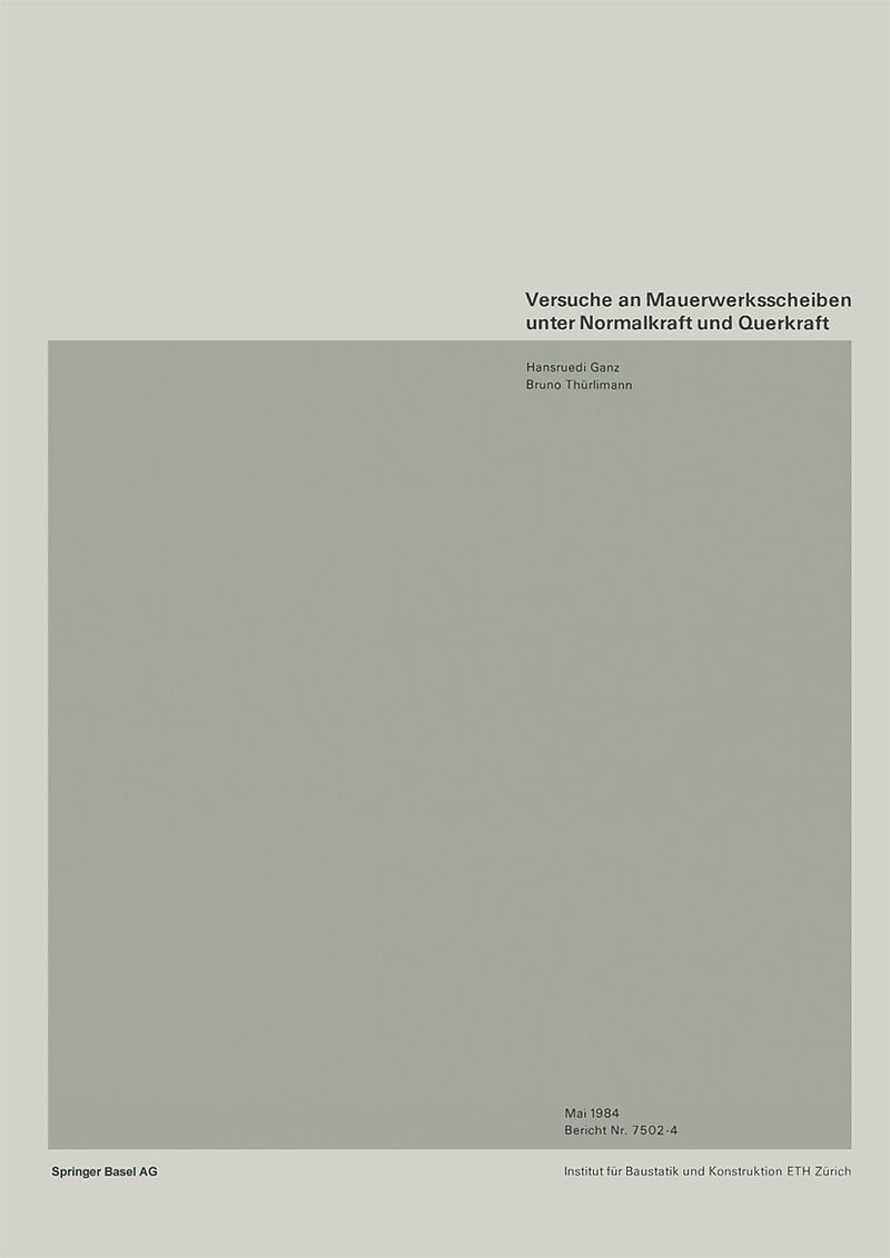 InhaltVersuchskörper.- Versuchsdurchführung.- Versuchsresultate.- Zusammenfassung.- Résumé.- Summary.