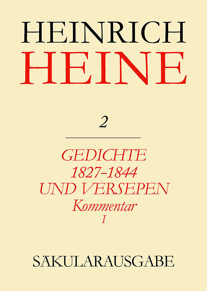Der Kommentar zum Textband 2 (Gedichte 1827-1844 und Versepen) der Heine-Säkularsausgabe, der bereits 1979 erschienen ist, enthält die Entstehungsgeschichten, Überlieferungsangaben und Erläuterungen zu sämtlichen Gedichten, die zwischen dem Abschluss des Manu...