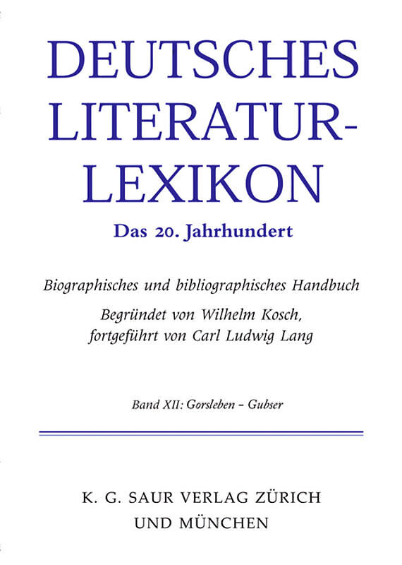The Deutsches Literatur-Lexikon. Das 20. Jahrhundert lists authors who write in the German language and who were mainly active in the 20th century. Volume 11 includes articles on Robert Gernhardt, Stefan George, Friedrich Glauser, Claire and Yvan Goll, and Eu...