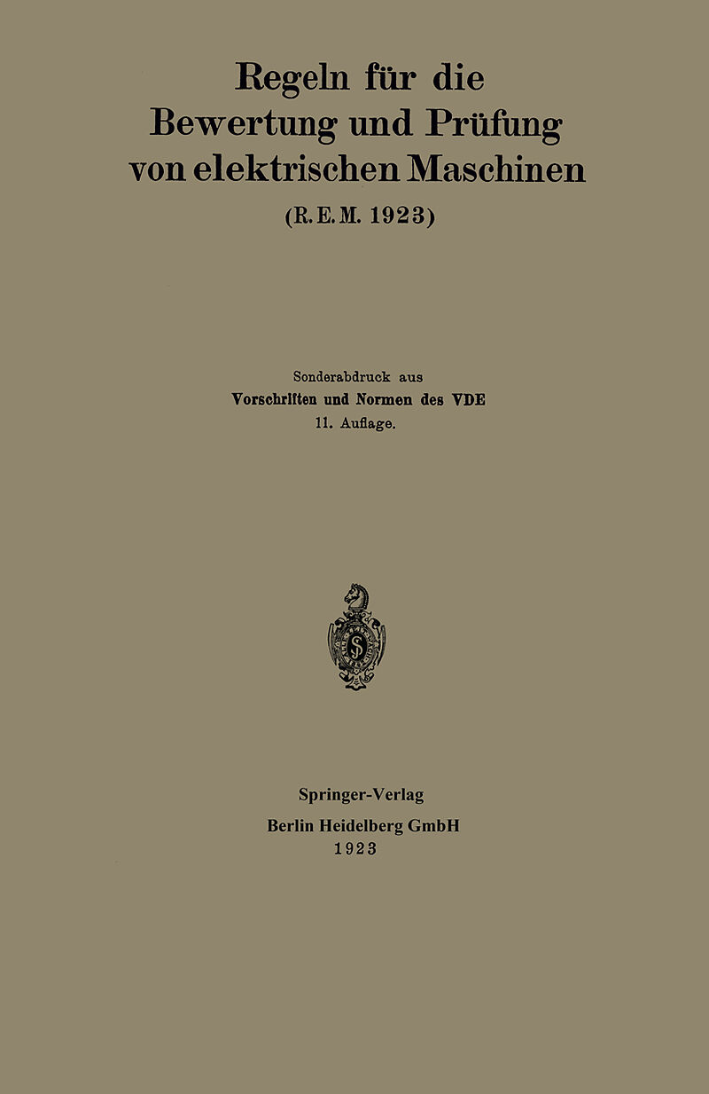 Regeln für die Bewertung und Prüfung von elektrischen Maschinen (R.E.M. 1923)