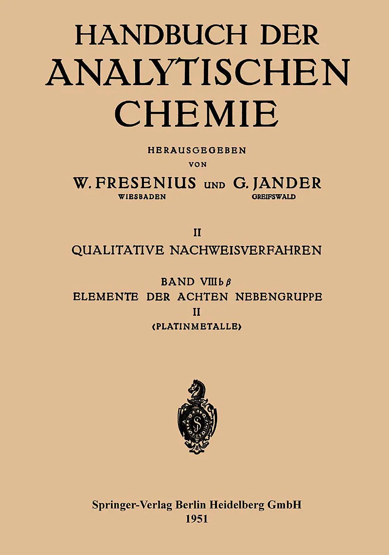 Platinmetalle. Platin. Palladium. Rhodium. Iridium. Ruthenium. Osmium.- Anhang: Spektrochemische Analysenmethoden.