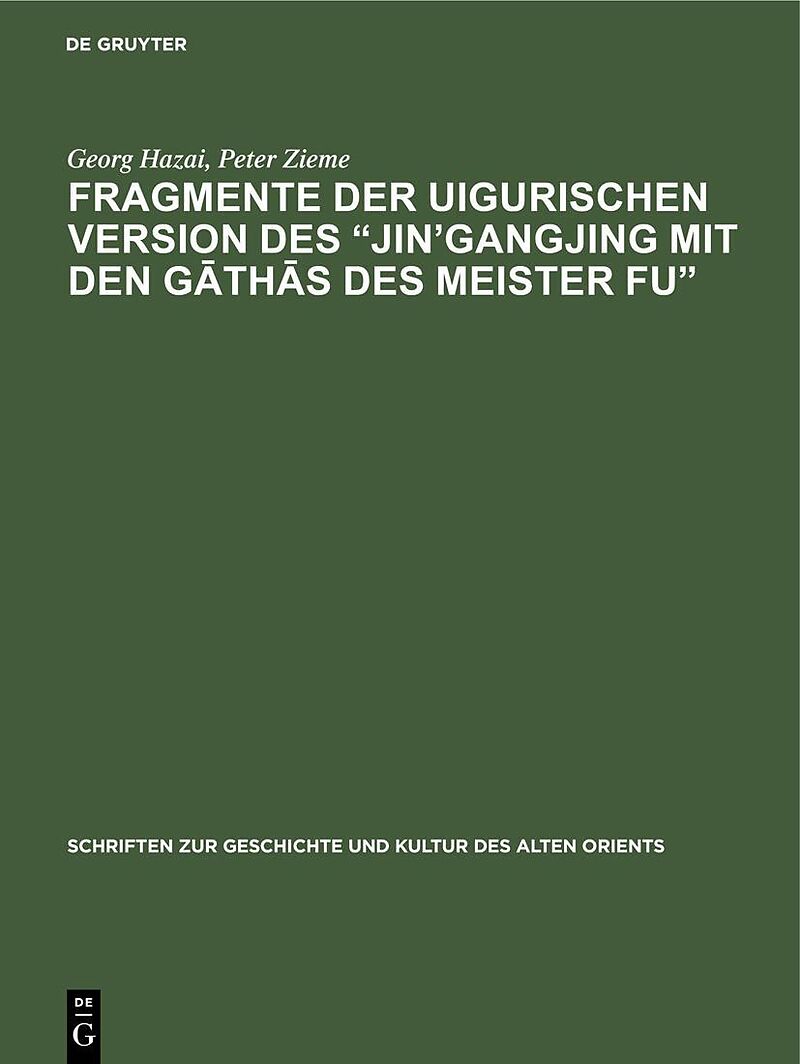 Dieser Titel, "Fragmente der uigurischen Version des Jin'gangjing mit den Gths des Meister Fu", ist eine wissenschaftliche Publikation, erschienen bei De Gruyter Brill. Ausführliche Beschreibung, Inhaltsverzeichnis und weitere Angaben finden Sie auf der Verlag...