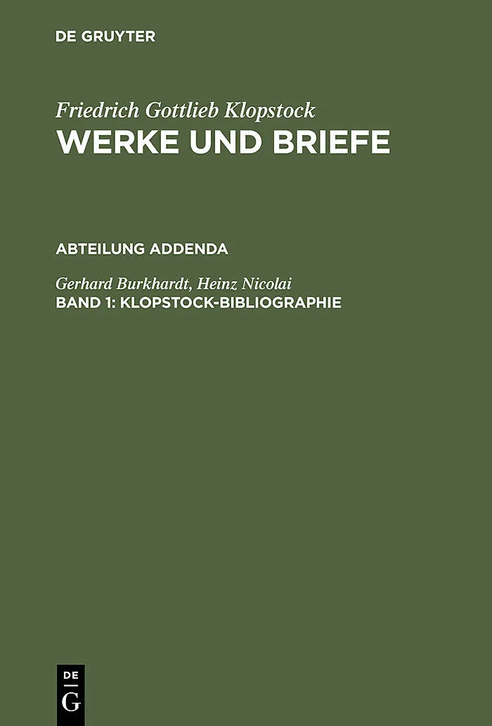 Dieser Titel, "Klopstock-Bibliographie", ist eine wissenschaftliche Publikation, erschienen bei De Gruyter Brill. Ausführliche Beschreibung, Inhaltsverzeichnis und weitere Angaben finden Sie auf der Verlagswebsite: https://www.degruyterbrill.com/isbn/978311083...