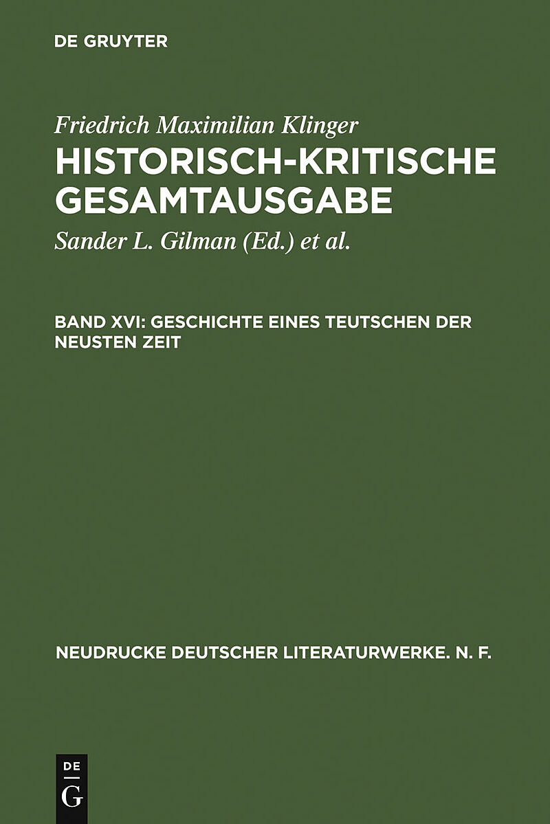 Friedrich Maximilian Klinger's »Geschichte eines Teutschen der neusten Zeit« (The Tale of a German Contemporary) appeared in 1789 as the sixth volume of a planned cycle of 10 philosophical novels. It is an important testimony of the author's engagement with, a...