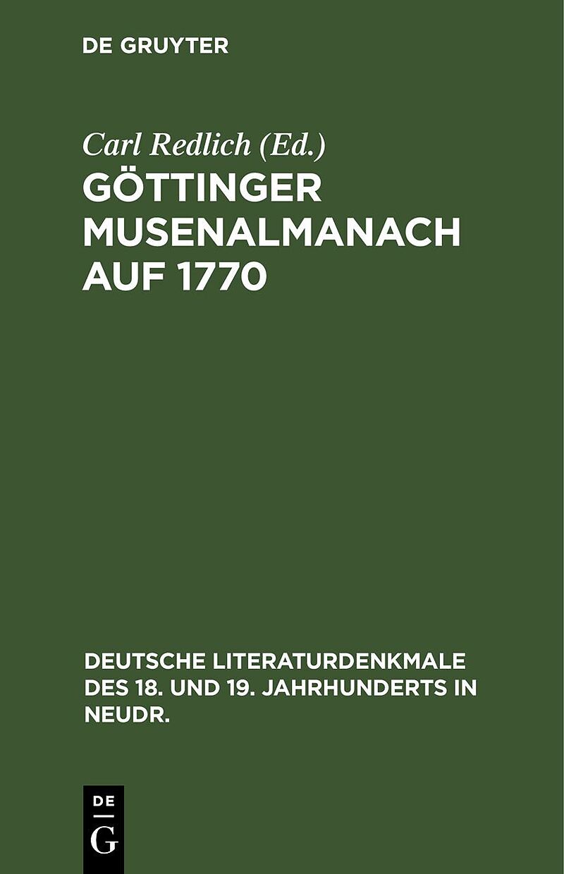 Dieser Titel, "Göttinger Musenalmanach auf 1770", ist eine wissenschaftliche Publikation, erschienen bei De Gruyter Brill. Ausführliche Beschreibung, Inhaltsverzeichnis und weitere Angaben finden Sie auf der Verlagswebsite: https://www.degruyterbrill.com/isbn/...