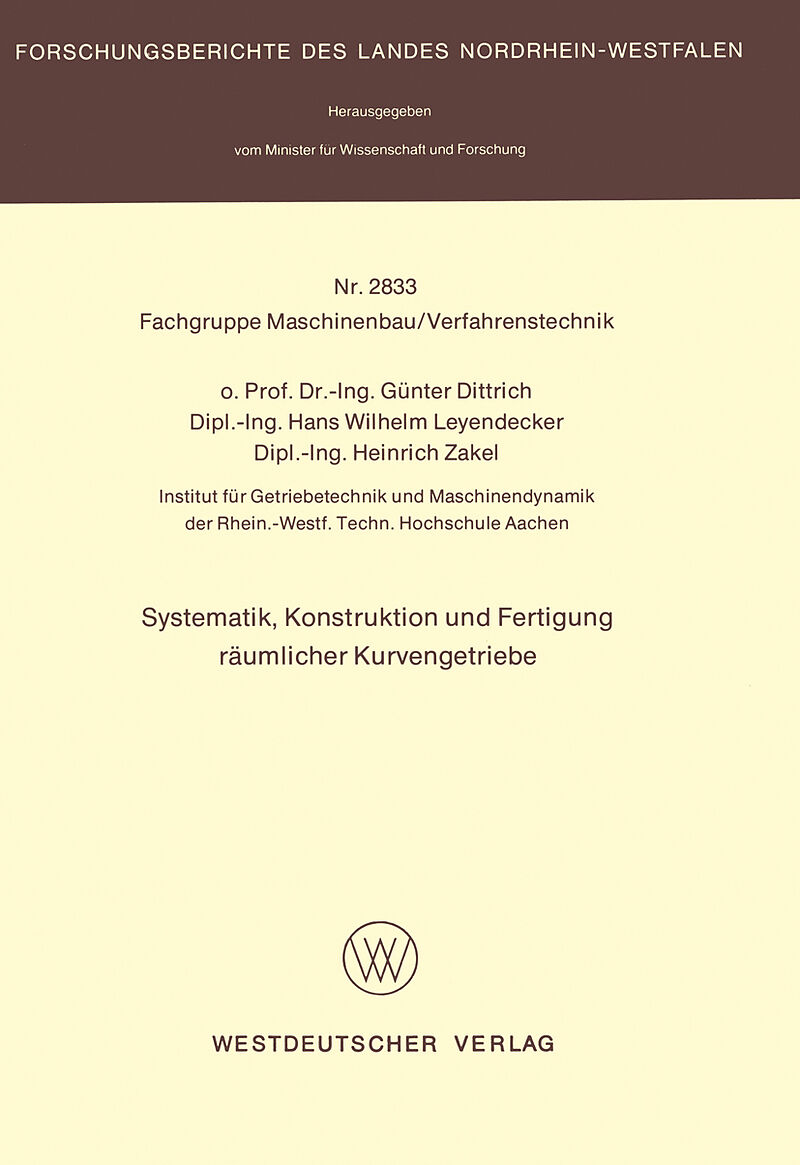 Inhalt 1. Einleitung.- 2. Systematik.- 2. 1. Aufgabe eines (räumlichen) Kurvengetriebes.- 2. 2. Formen der Bewegungsübertragung.- 2. 3. Analytische Beschreibung der Eingriffsoberfläche.- 2. 4. Ideale Formen des Zwischengliedes.- 2. 5. Systematik allgemein räum...