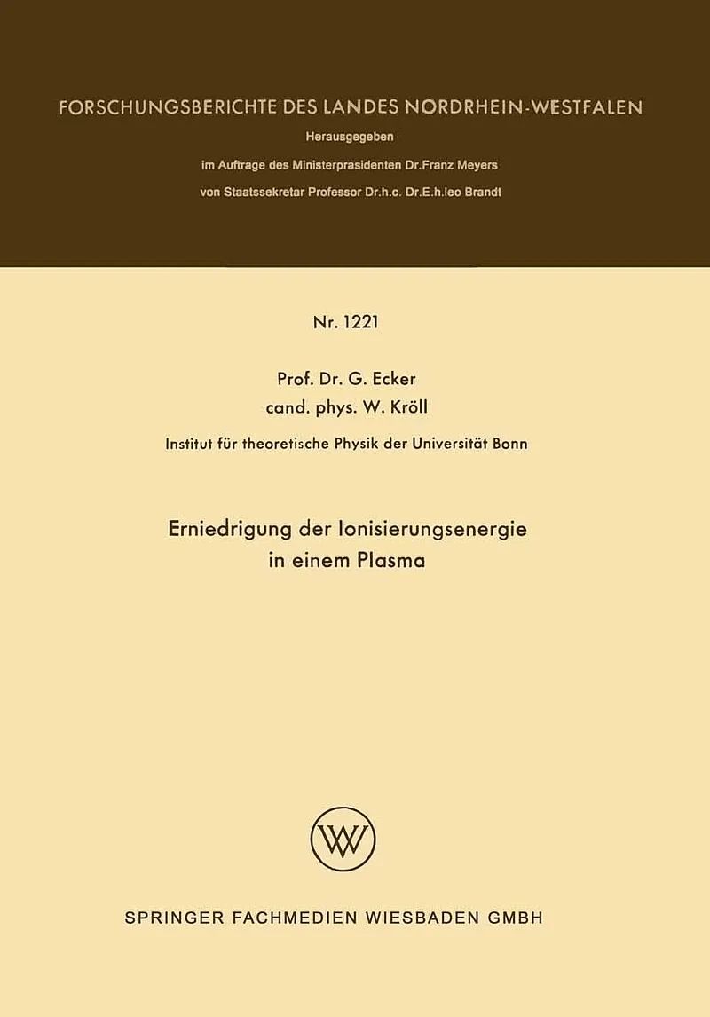 Inhalt Abstract.- Konzept.- A. Verallgemeinerte Ionisationsformel und Definition der Erniedrigung der Ionisierungsenergie für ein Plasma im thermodynamischen Gleichgewicht.- B. Berechnung der Erniedrigung der Ionisierungsenergie für ein Plasma im thermodynamis...